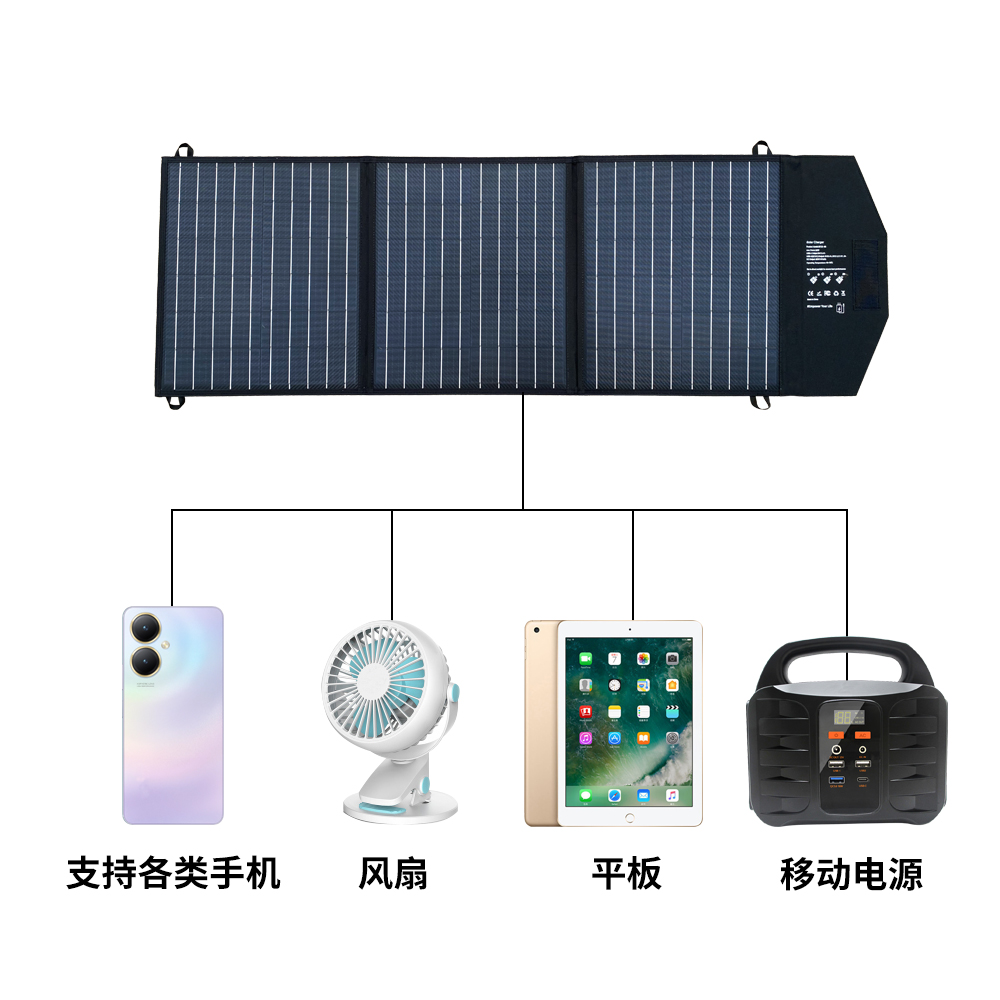 60W便攜太陽(yáng)能折疊包,戶(hù)外充電小幫手
