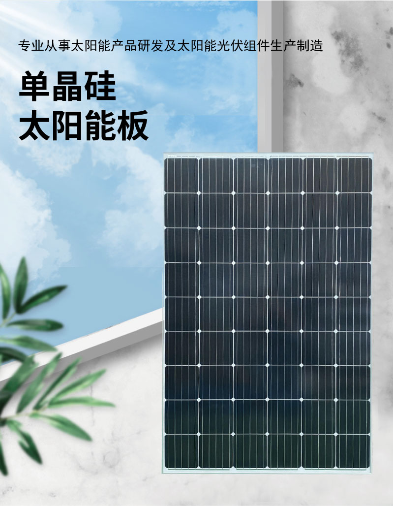 單晶硅太陽(yáng)能電池板鋁合金邊框單晶電池片210W家用照明工廠直供