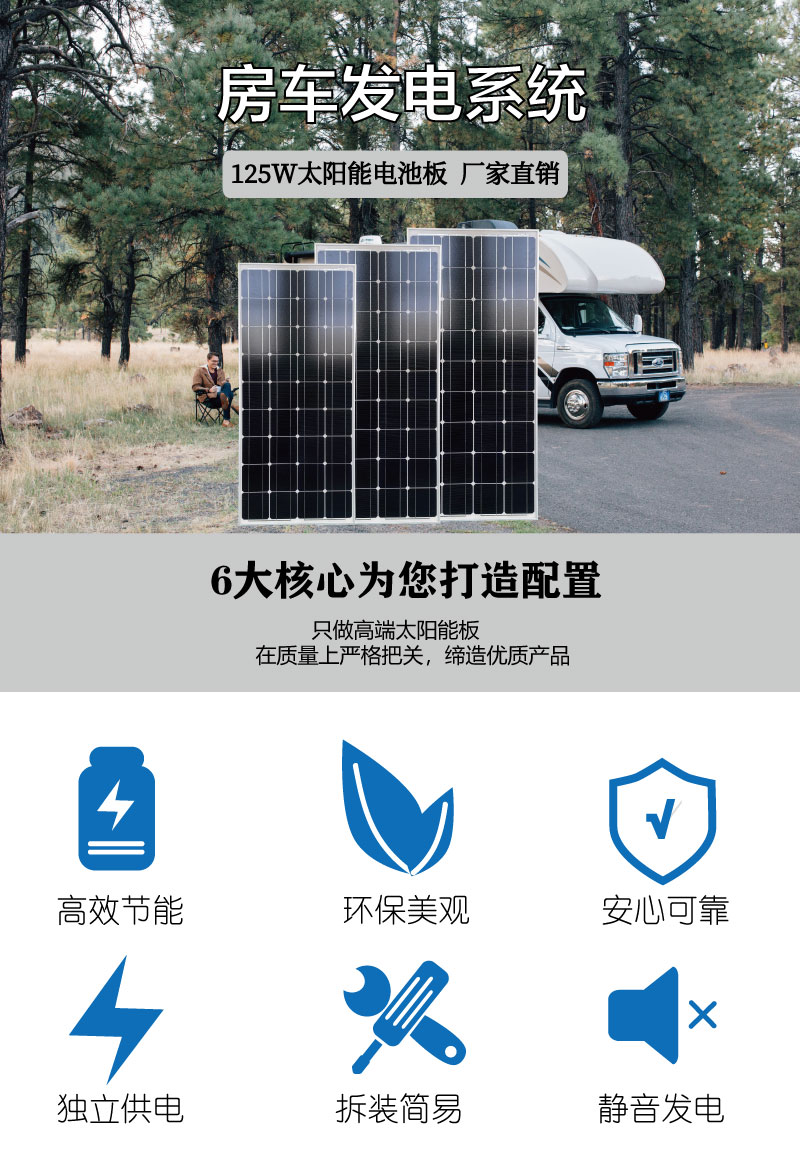 125W太陽(yáng)能板18V房車光伏電池充電單晶硅戶外電源發(fā)電系統(tǒng)