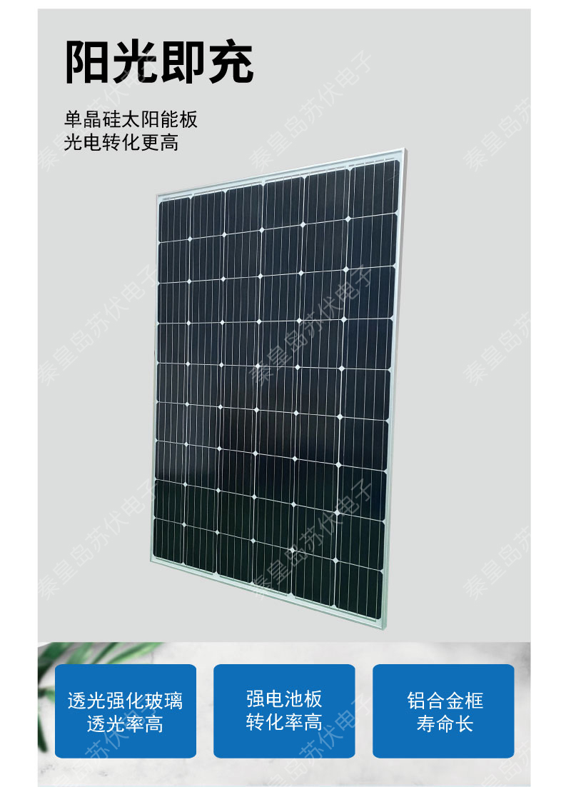 單晶硅太陽能電池板鋁合金邊框單晶電池片210W家用照明工廠直供